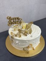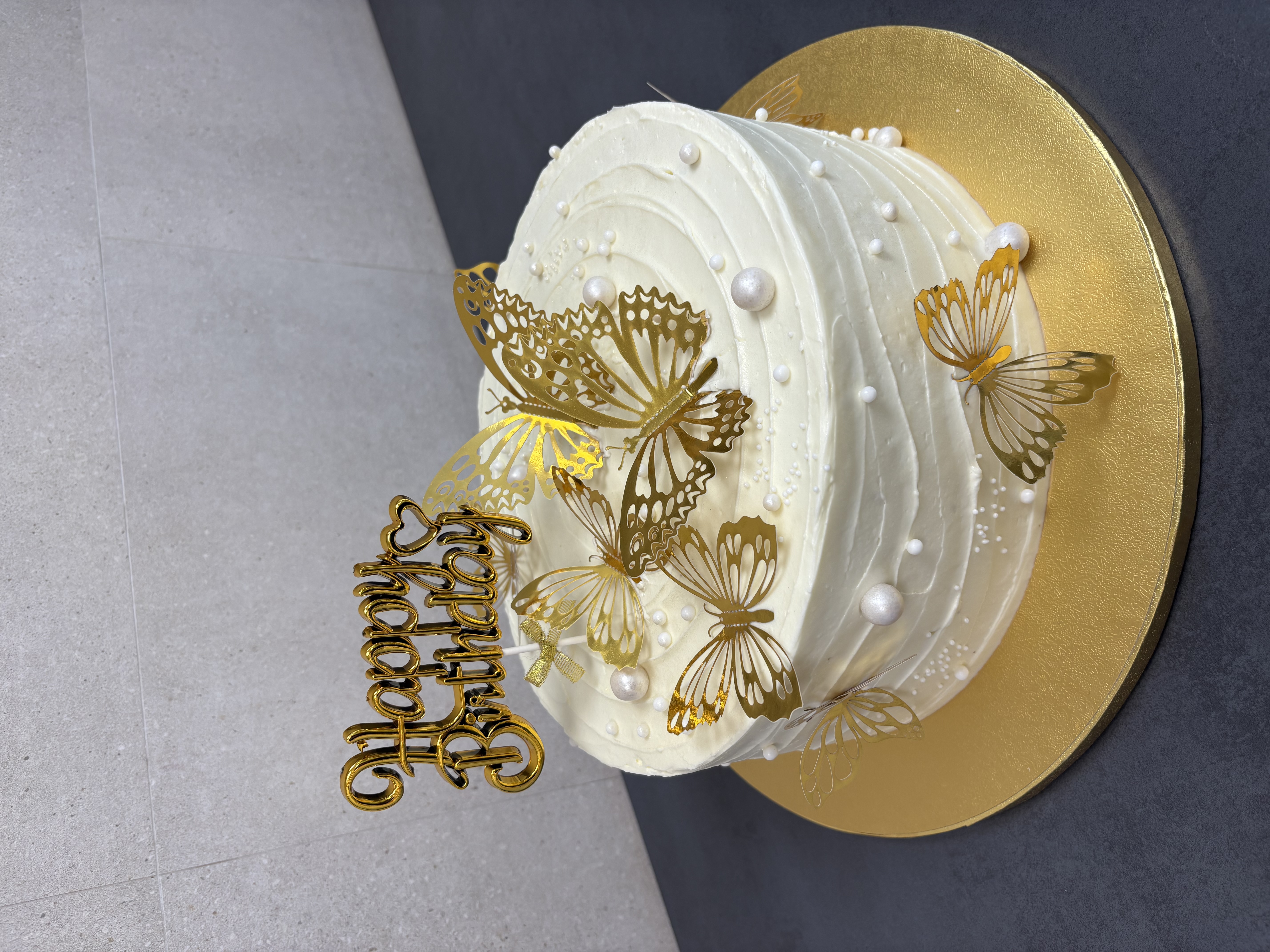 [ T 73 ] - Tort in crema de unt cu fluturasi aurii
