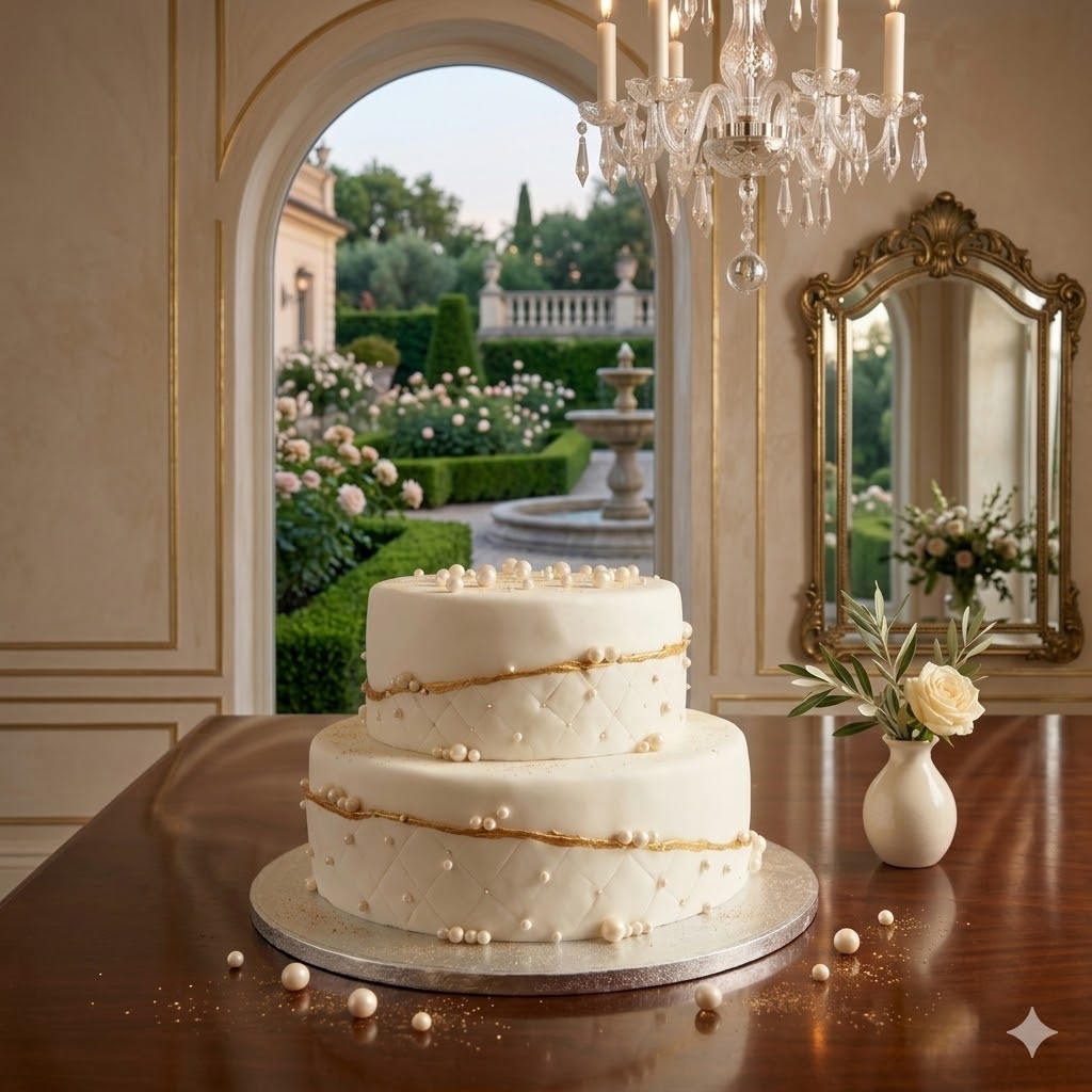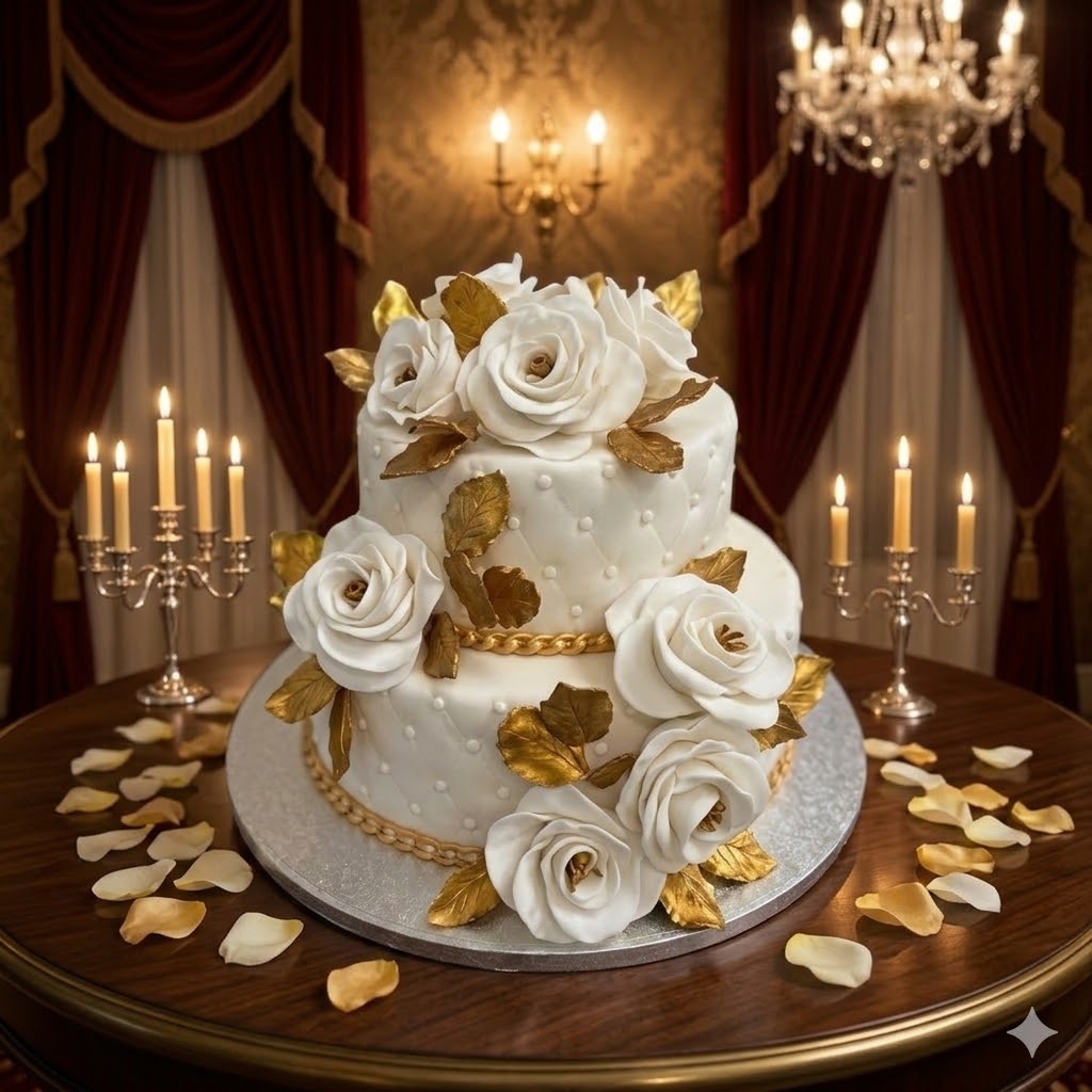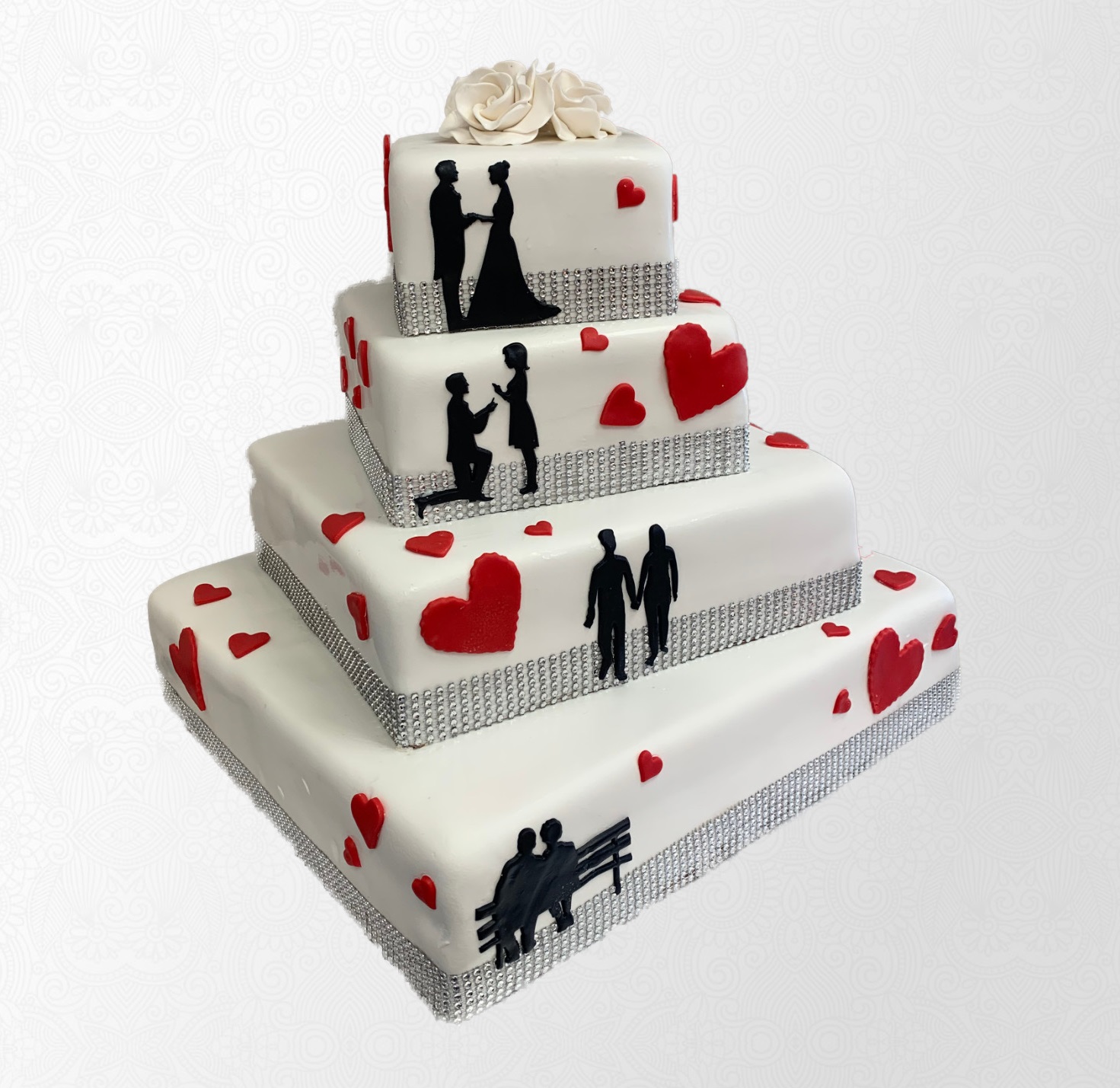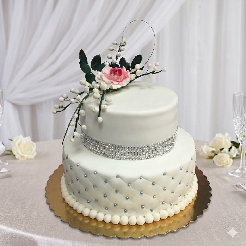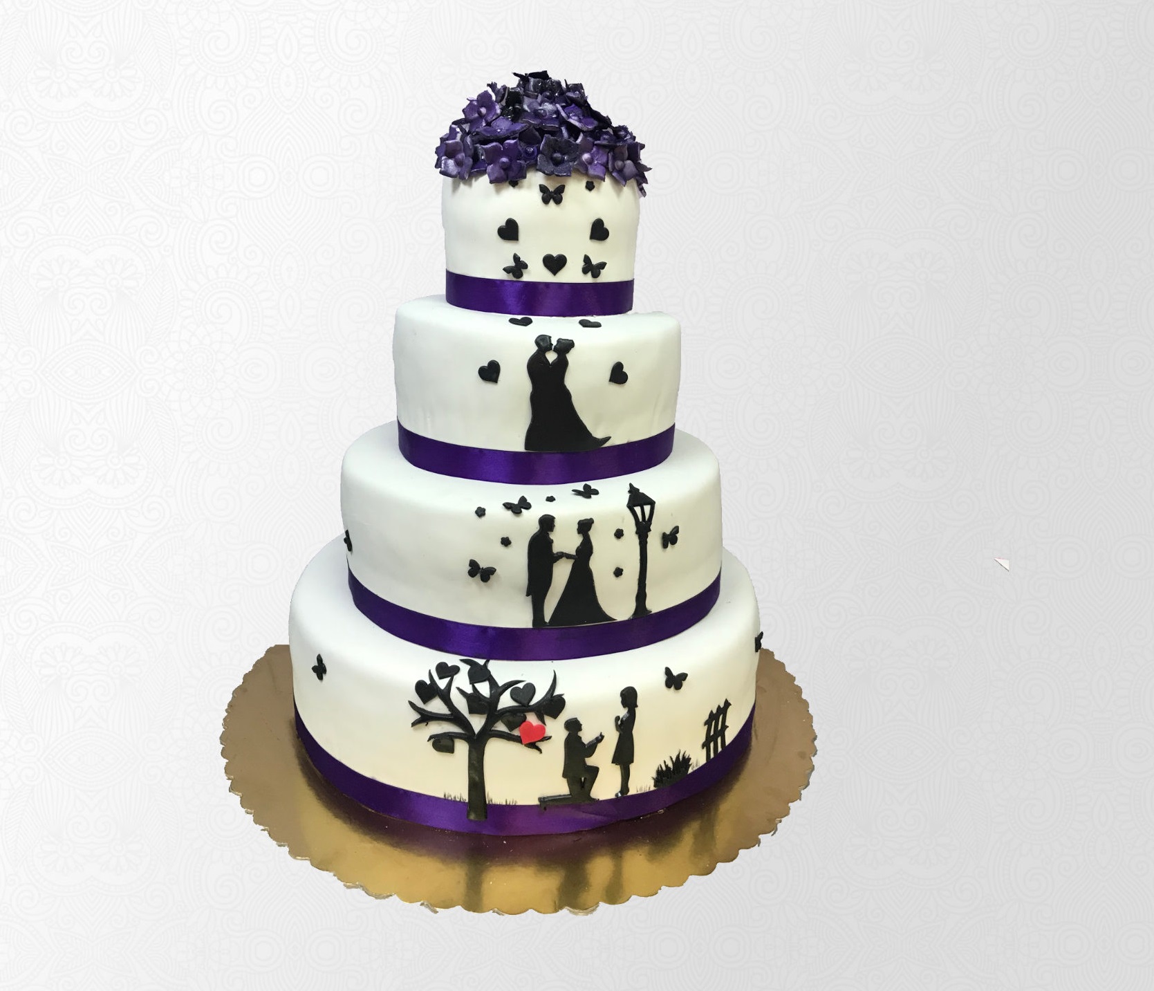 imbracat in frisca; se adauga pretul figurinei necomestibile; pentru greutati mai mici se adauga si pretul trandafirilor din icing (pasta de zahar)