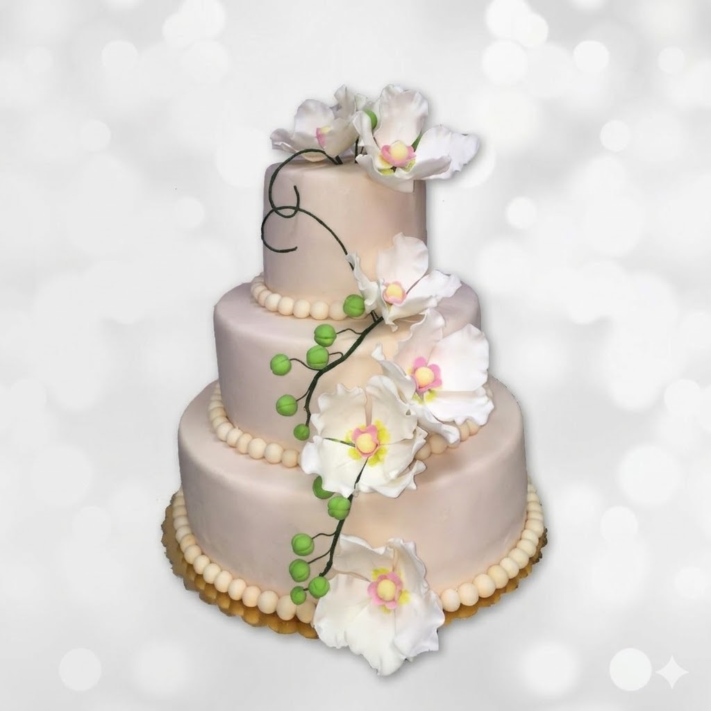 imbracat in frisca; crinii sunt realizati manual din icing (pasta de zahar); decorul poate contine si elemente necomestibile