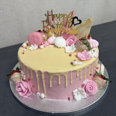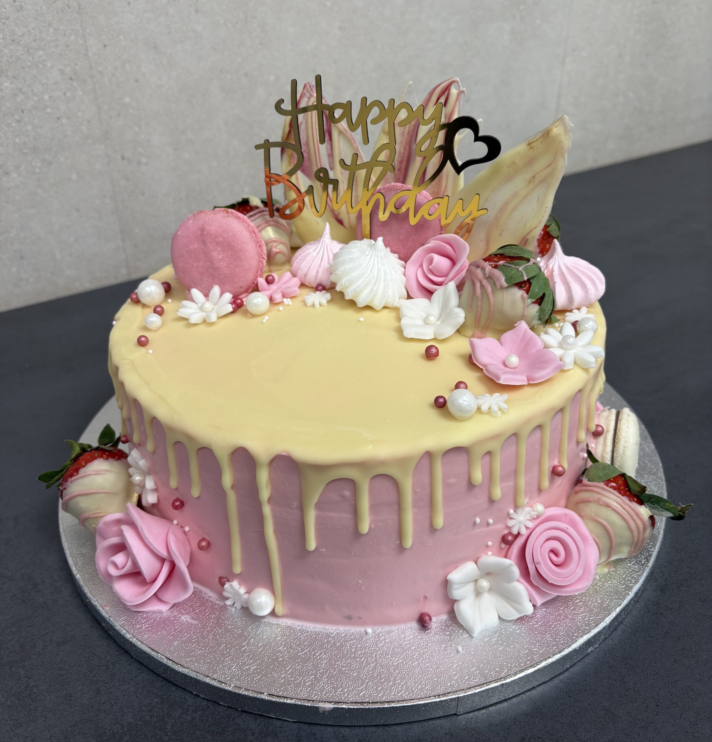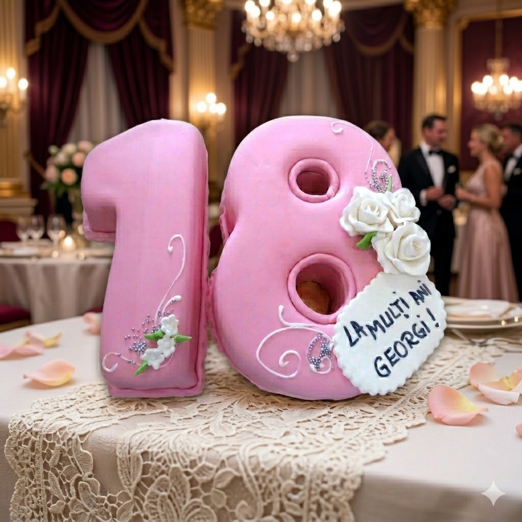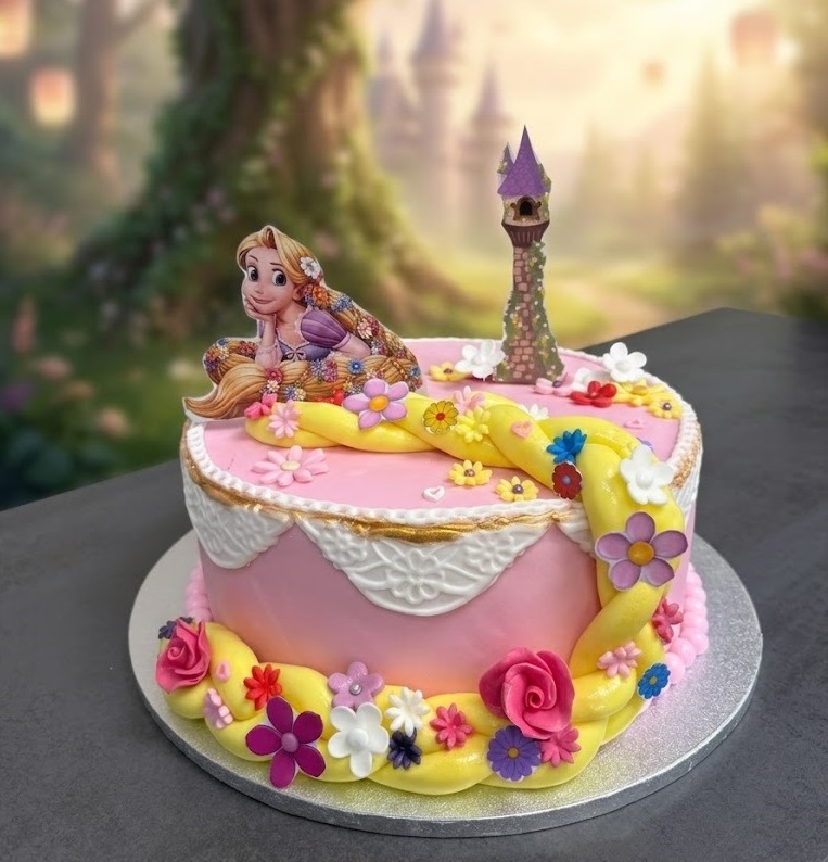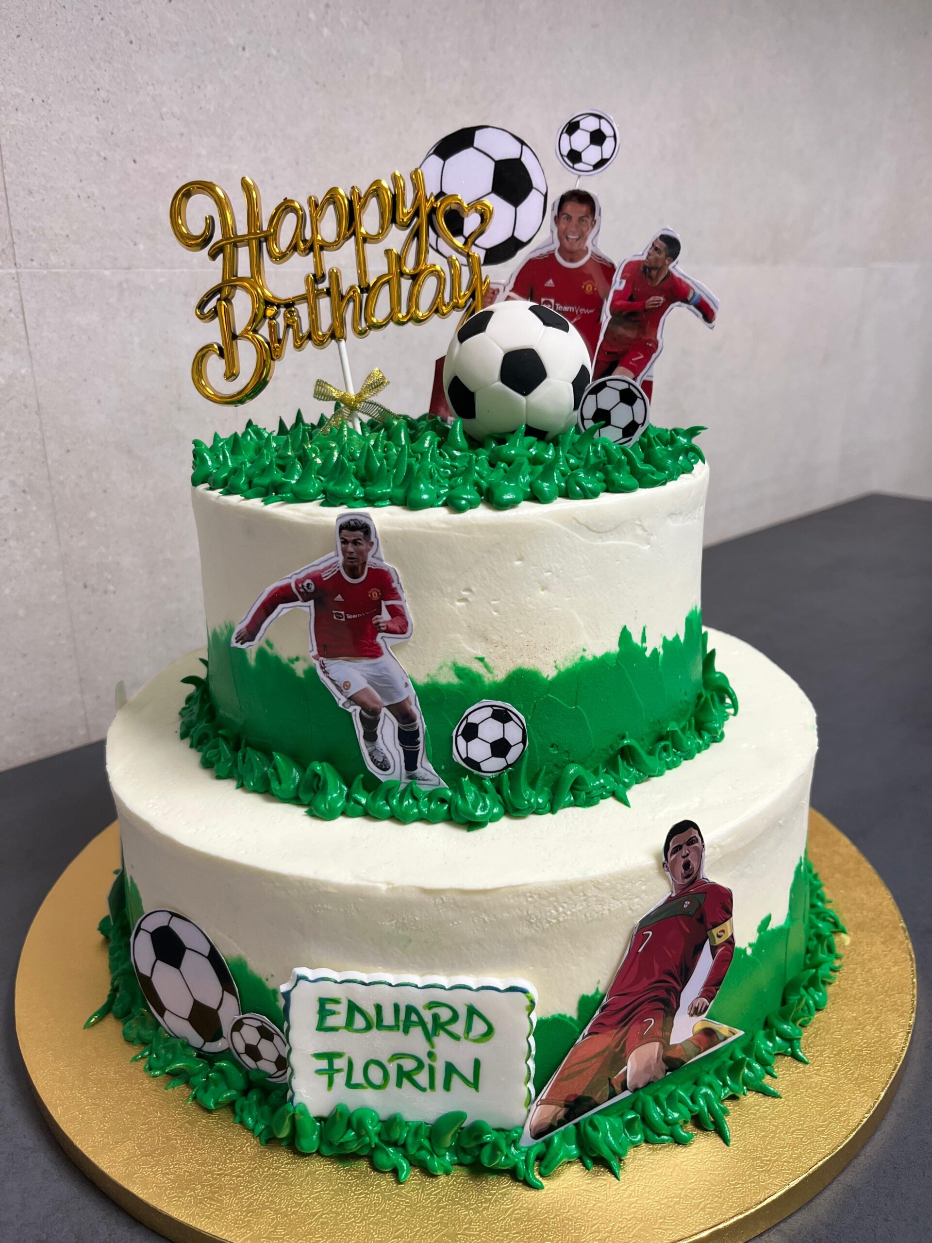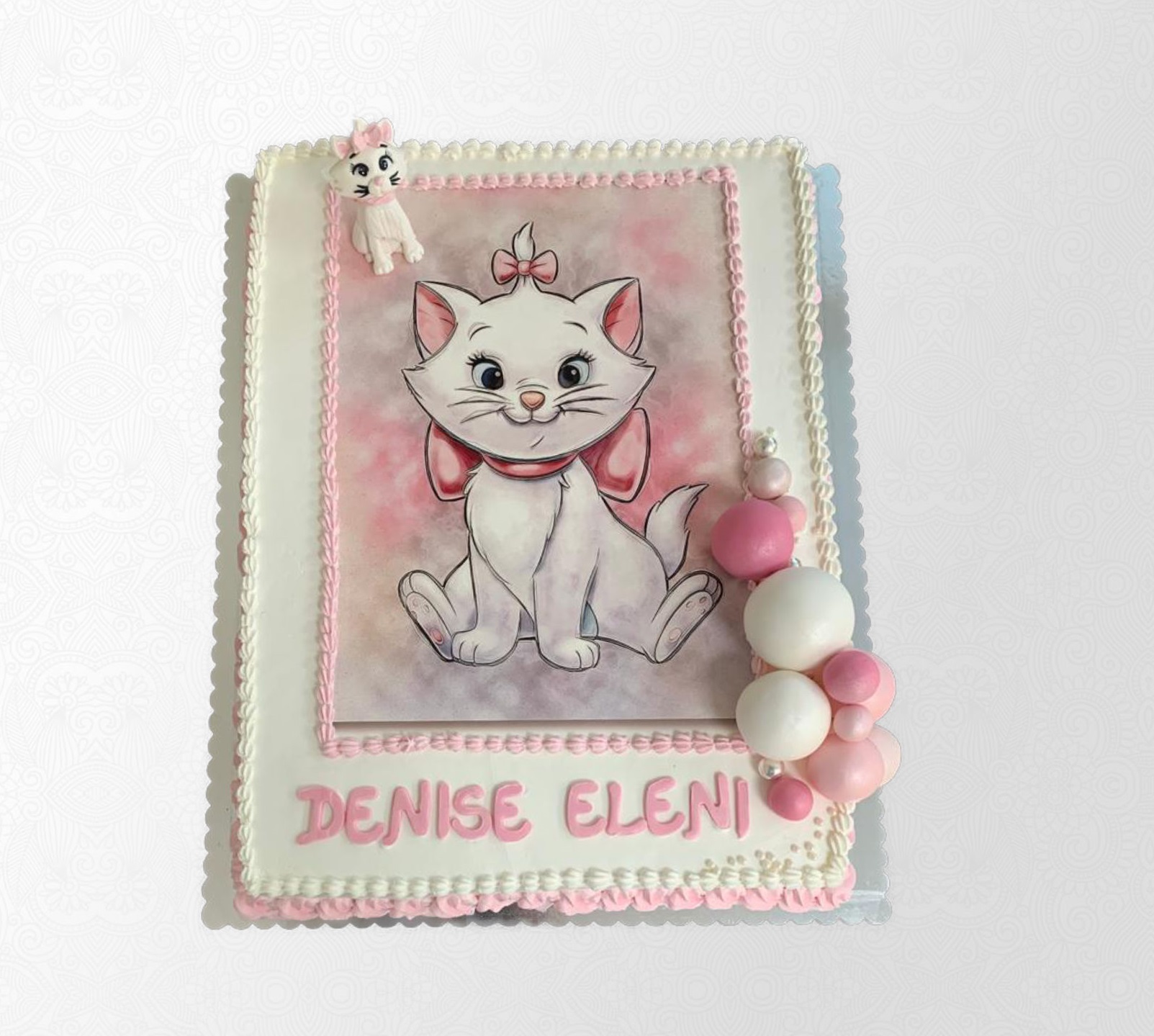 imbracat in crema de unt; decorul contine si elemente necomestibile; se adauga pretul topper-ului, al figurinei din icing si al imaginii necomestibile