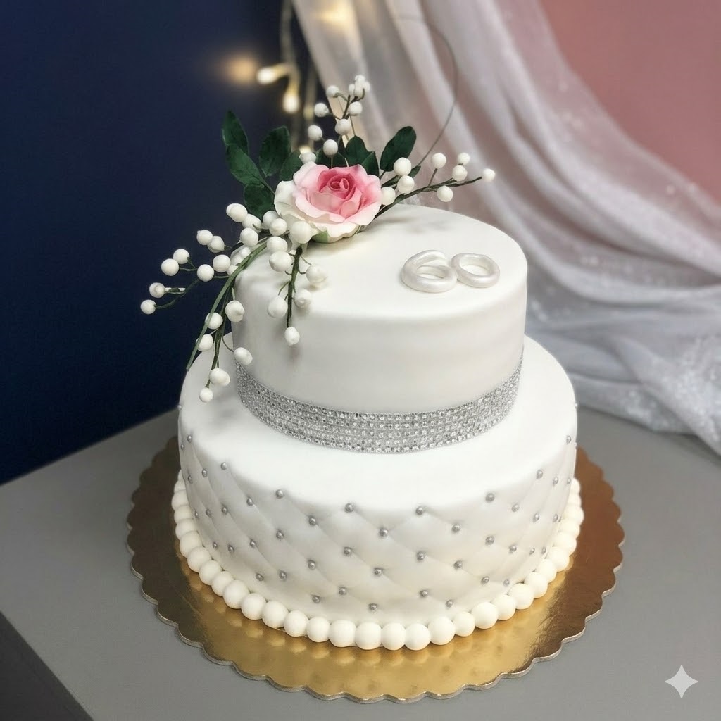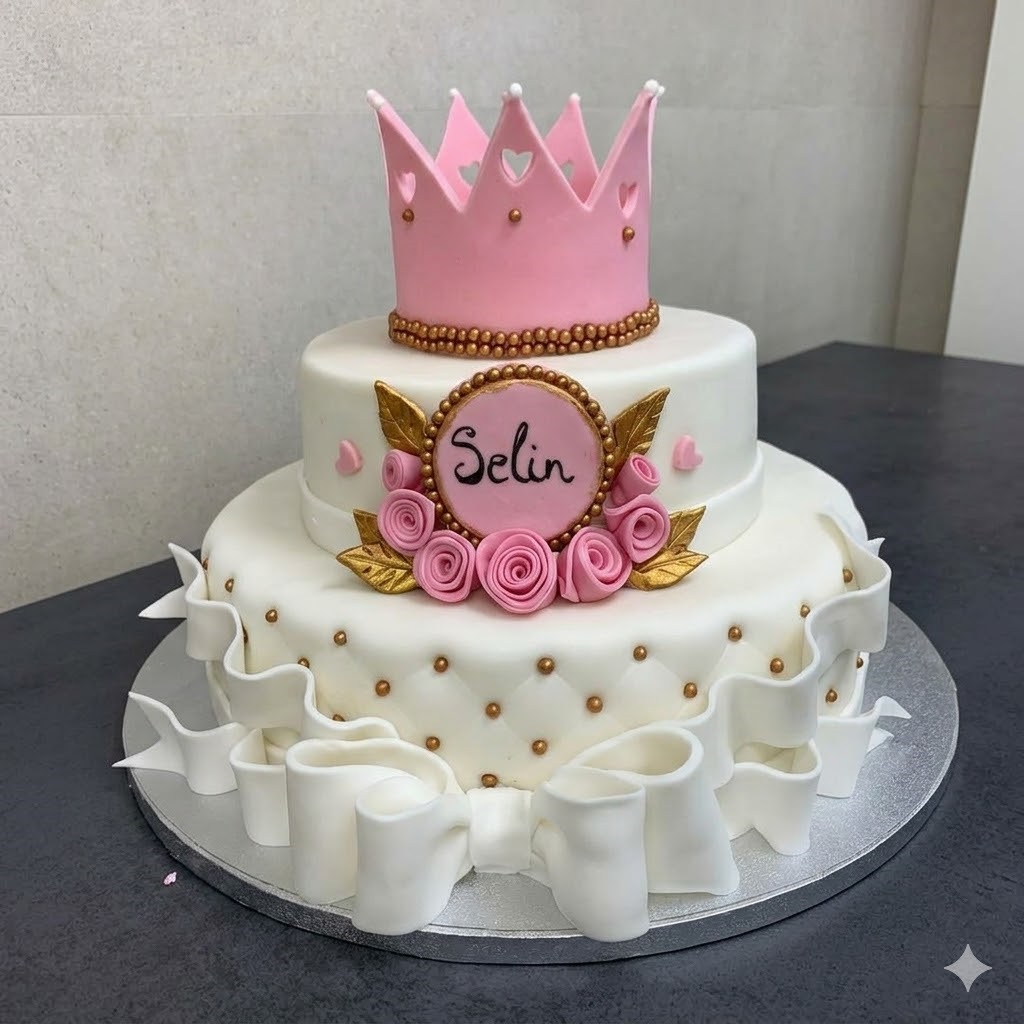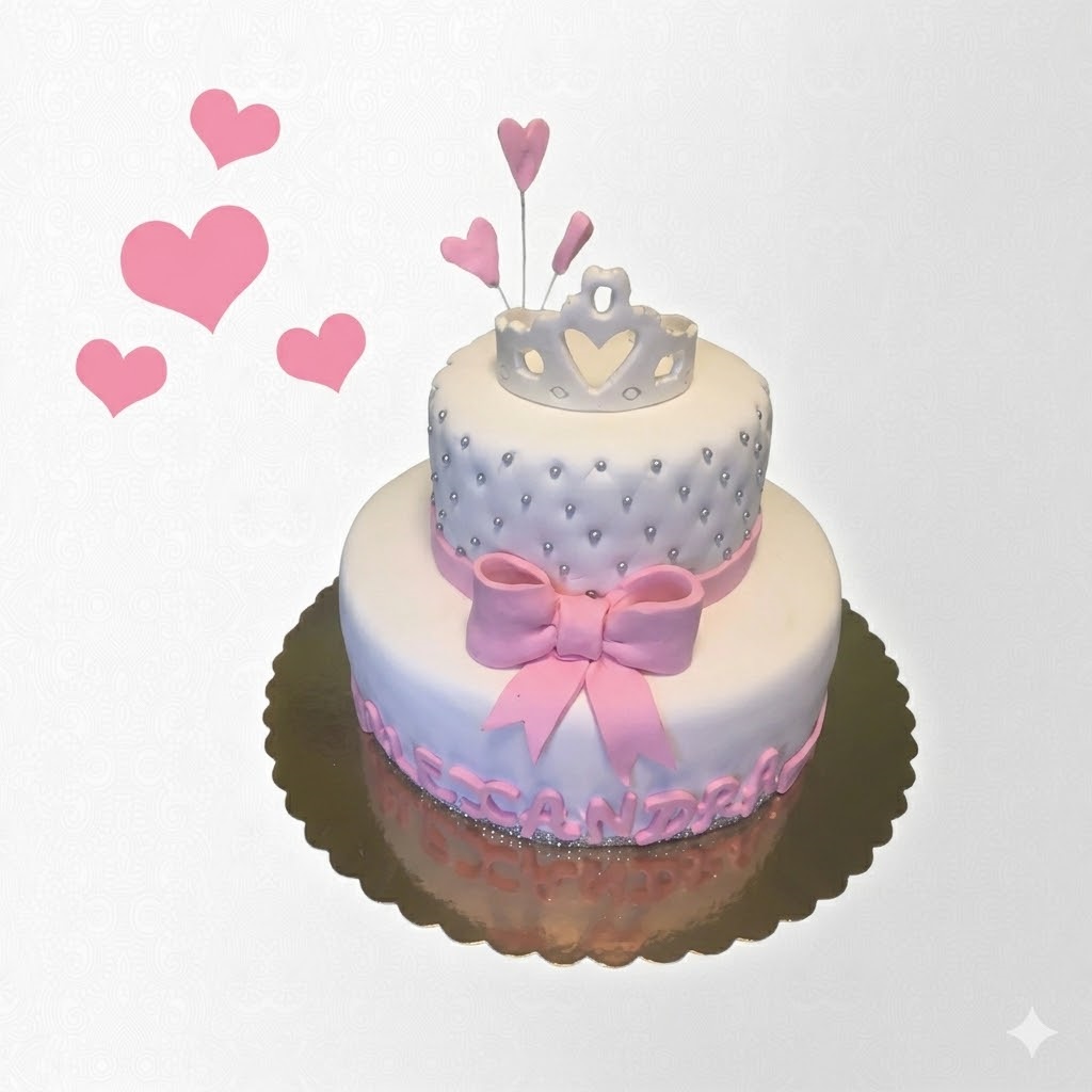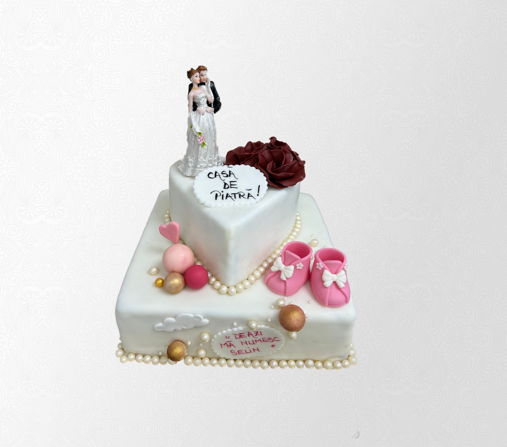 imbracat in icing (pasta de zahar); decorul contine si elemente necomestibile; se agauga si pretul coronitei din icing
