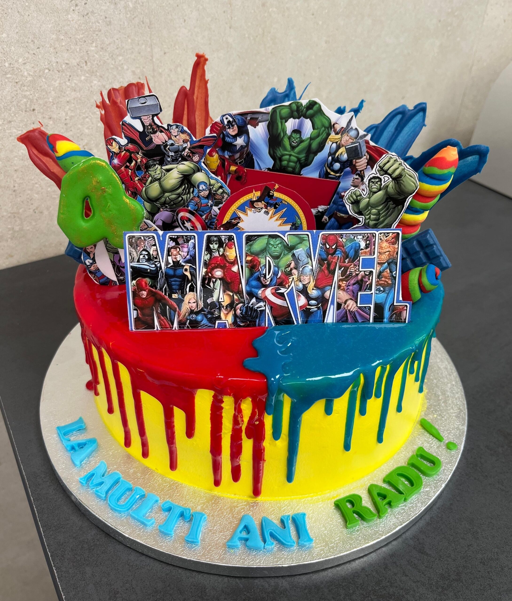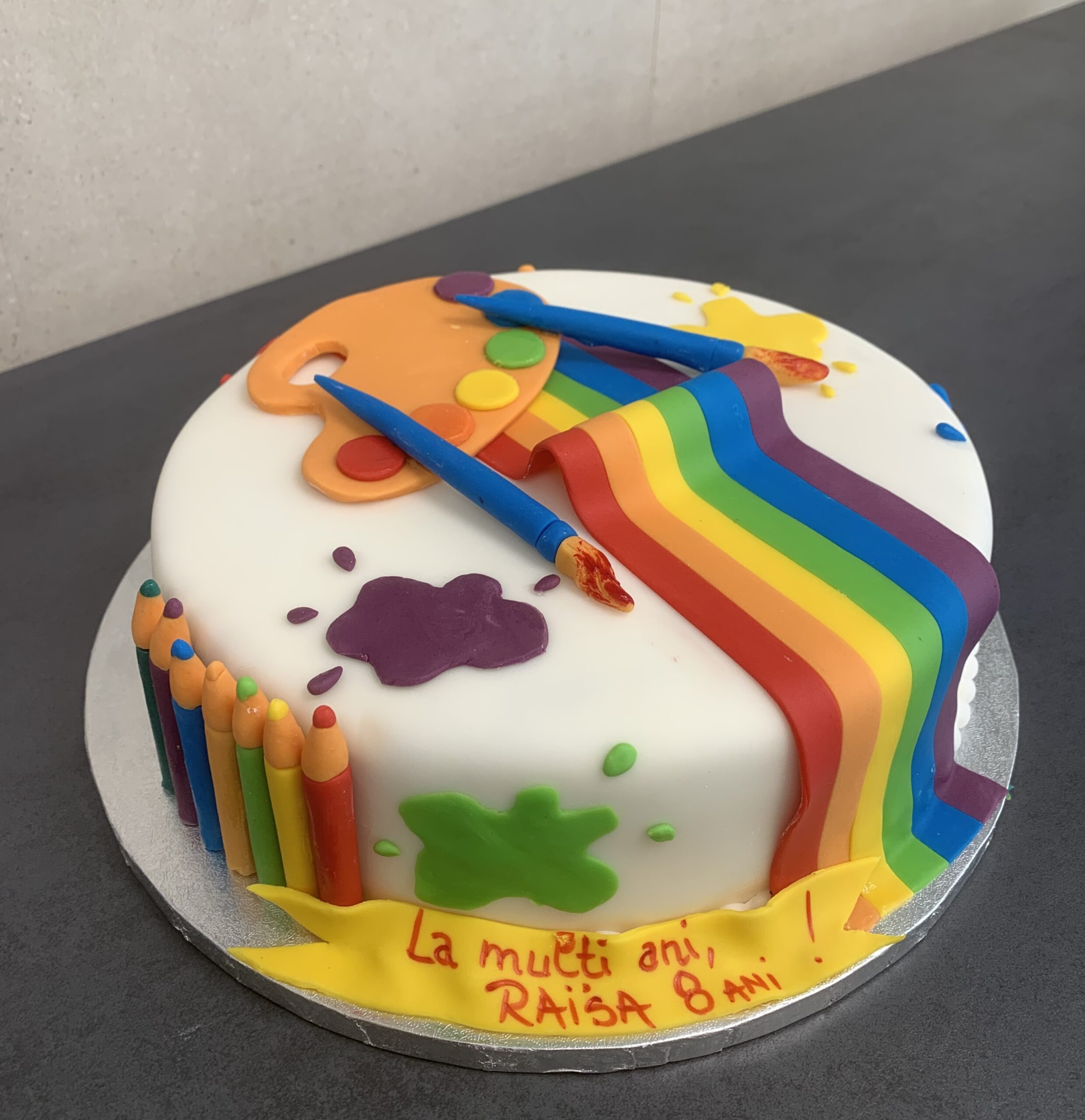 imbracat in icing (pasta de zahar); decorul contine si elemente necomestibile; se adauga si pretul imaginii comestibile