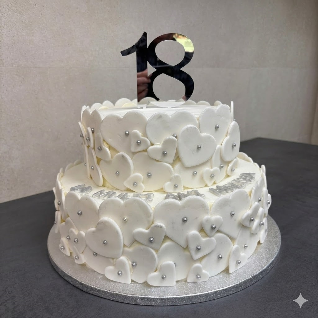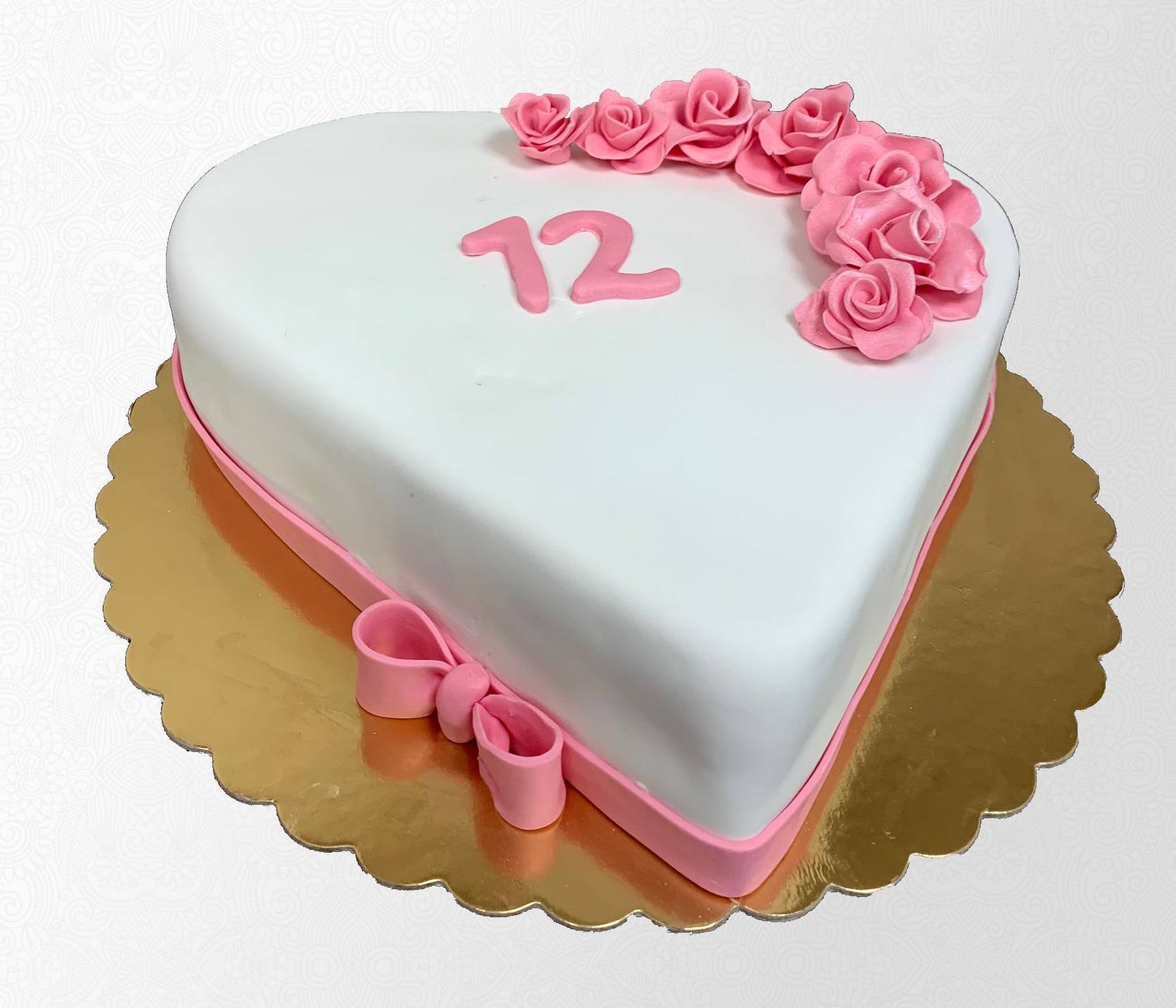 inimioara este imbracata in icing (pasta de zahar), tortul este imbracat in frisca