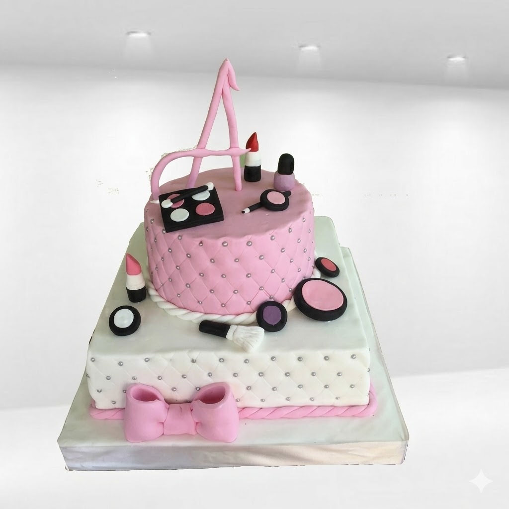 imbracat in icing (pasta de zahar); decorul contine si elemente necomestibile; pentru greutati mai mici se achita separat pretul figurinelor pentru machiaj din icing