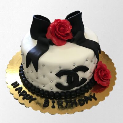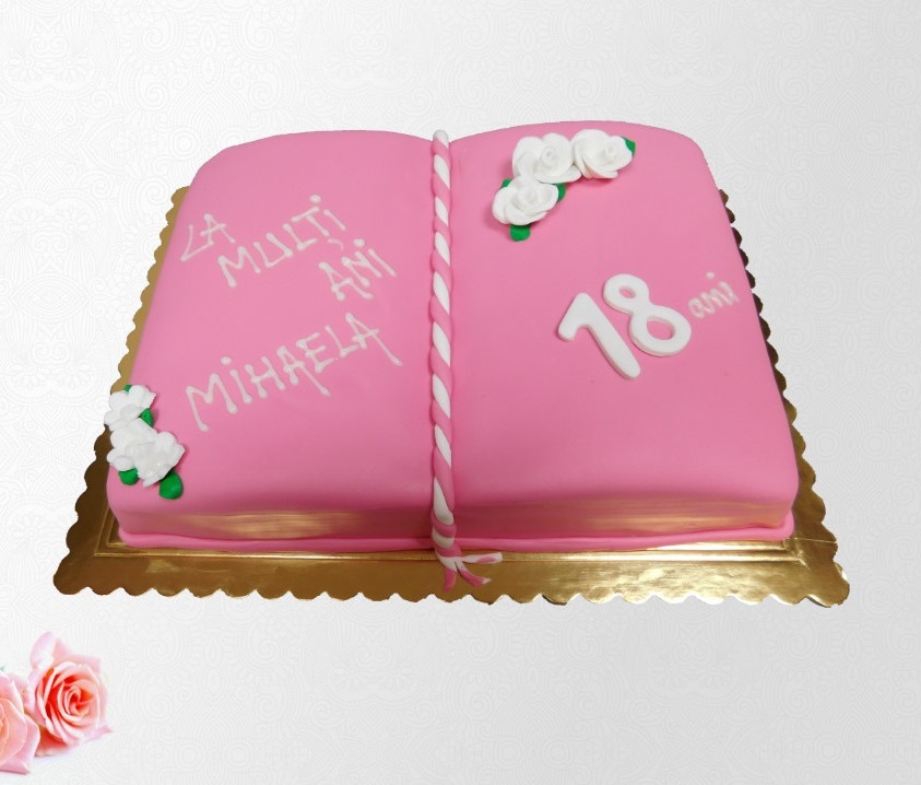 imbracat in icing (pasta de zahar); floarea este realizata manual din icing; decorul contine si elemente necomestibile